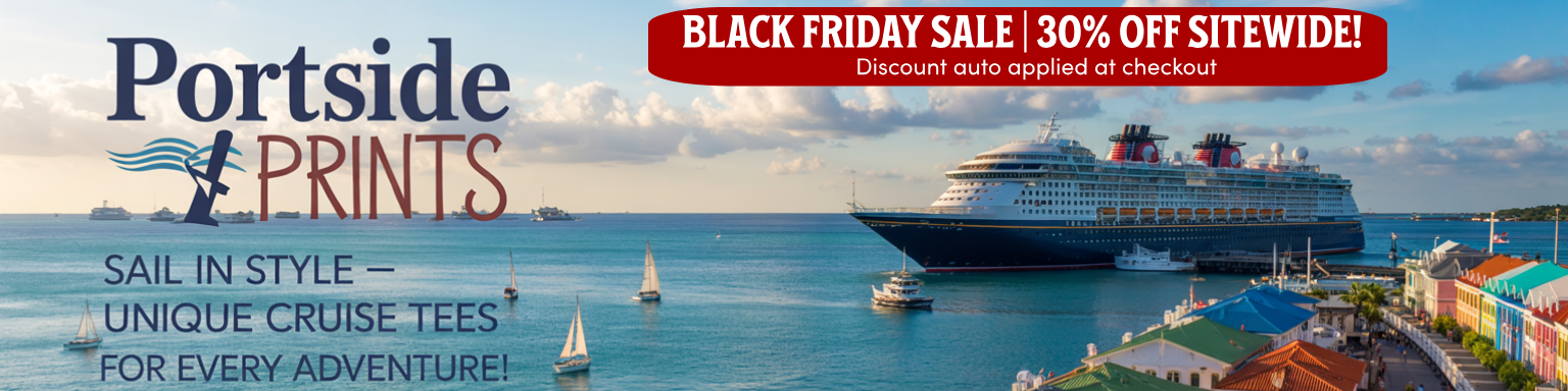 Set sail with Portside Prints and express your love for all things cruising with our exclusive apparel. Our designs capture the adventure, relaxation, and thrill of life at sea, perfect for those who can’t wait to feel the ocean breeze. Whether you're a seasoned cruiser or dreaming of your next voyage, our tees let you wear your passion wherever you go.
